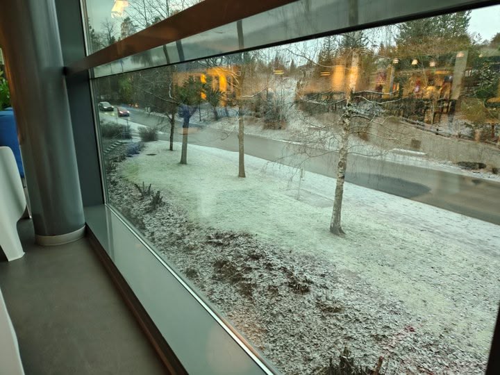 It's only -1 C today so the robads are wet but there is a fair amount of frost as you can see in this picture taken from my couch in the IKEA restaurant