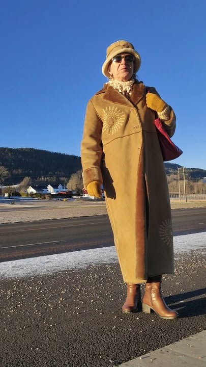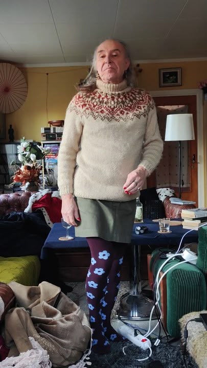 Feeling well enough for a stroll to the post office to post a couple of parcels. Dressed in my thickest tights and a nice warm jumper (knitted for my late wife by my mother-in-law).