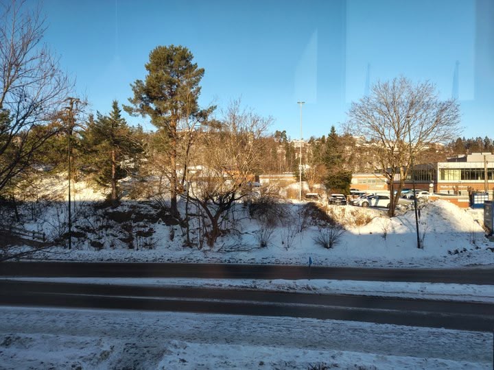 @Rickichickie Yesterday was like that here but the sky cleared last night so now we have a clear sky. Of course that also means it's about five degrees colder, -11 C. Here's the view from my table at IKEA