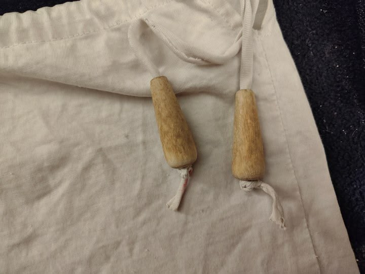 I added a couple of beads to the draw string to prevent it slipping back into the waistband. They came from an old bead curtain that i dismantled a couple of years ago.
