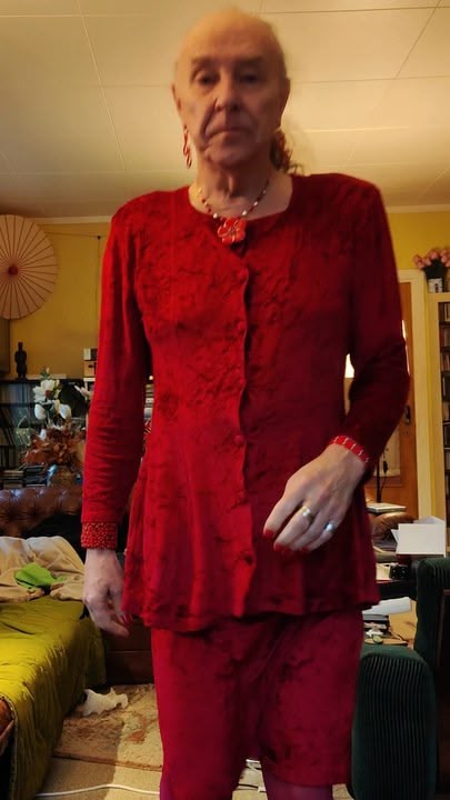 It is all, that it so red, everything is carefully chosen, red little details, red fingernails, all red but a little bit of silver... warm lighting and low and pose very natural but expressing something, hard to tell, there is something reserved and simultaneously inviting that makes a contrast, that is inviting to the eyes. Like it is paused in time. And has some romantic vibes too with the red lace and warm lightning. Beautiful picture!