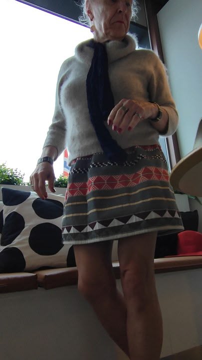 Today's outfit is a skirt that isn't ever so short. But it feels ever so revealing because it's wide and stiff so it only really touches me at the waist. Every time I stand up I feel that I have to check that I still have a skirt on.
