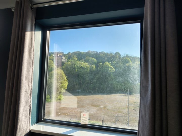 Here's the view from my rather dusty hotel window. Looks pretty rural