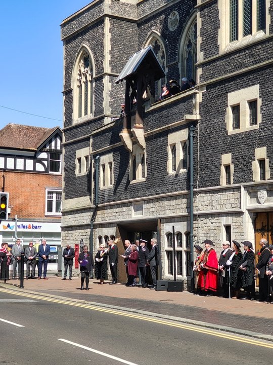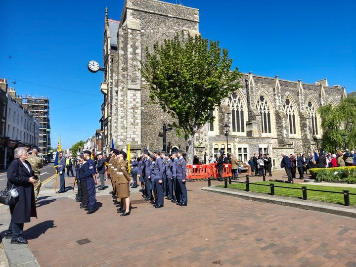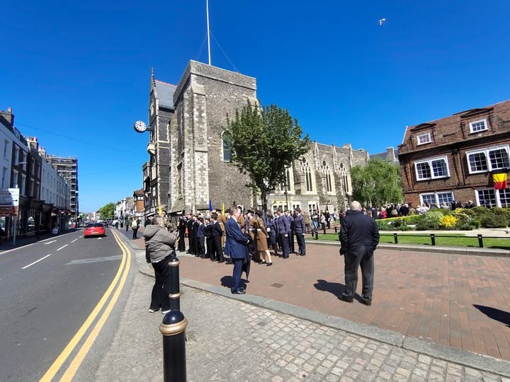As I wandered around the streets of Dover I came across a procession between the civic offices and the Maison Dieu. It's St George's Day of course but that's not the significance. It was the annual commemoration of the Zeebrugge raid.