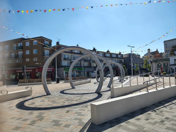 Random pictures taken in and from the Market Square. I don't know what the hoops are for or what they might represent.