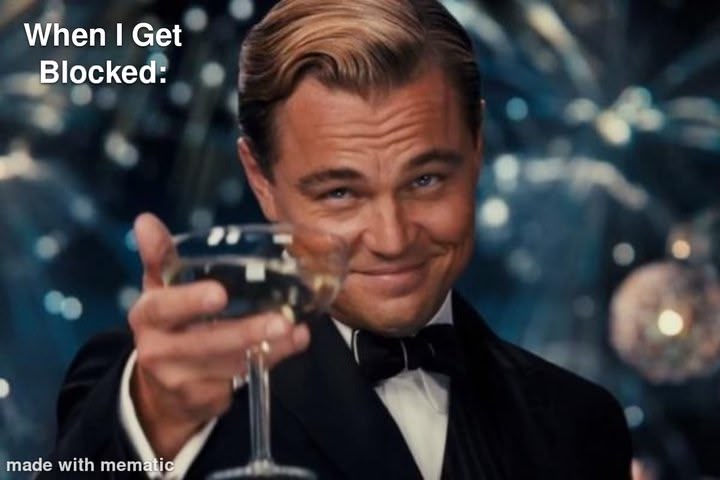 You are an awesome friend and person. I would never block you. ☺☺☺