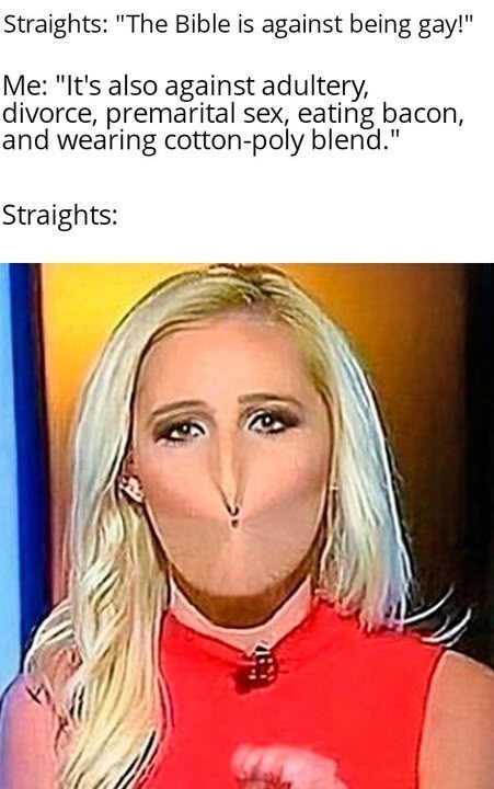 This only served to fuel the fire, of course, because nobody to whom that meme was addressed understood the point. They just kept dogpiling on me for perceived heterophοbia. Even some of the "pick-mes" started piling on me and calling me hateful. (For those who don't know, a pick-me gay, or just a "pick-me", is a member of the LGBT who tries to convince the straights that they're different from the others, that they're one of the good ones who support the Trump agenda and the continued subjugation of any of us who don't act straight enough.) Things were getting really bad. Really, really bad.