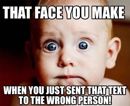 My best friend, once, probably sleepy and/or drunk, sent me a cheesy lovey text meant for his girlfriend. I was the immediate next contact in alphabetic order in his phone. There was no message deletion, nor message editing at the time, so I imagine the face wasn't too different from that. 4-5 messages of "sorry bud, wrong contact" and further attempts at explanations / damage-control followed.