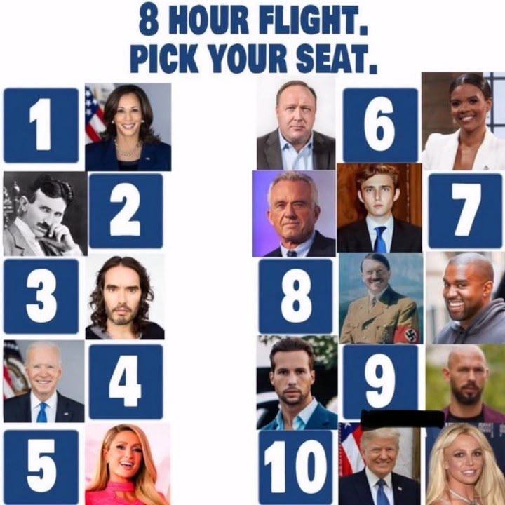 Probably not allowed in the game, but if possible, taking #9 and then exchanging it with Tristan so the brothers can sit together and getting the alise seat might be a good option.