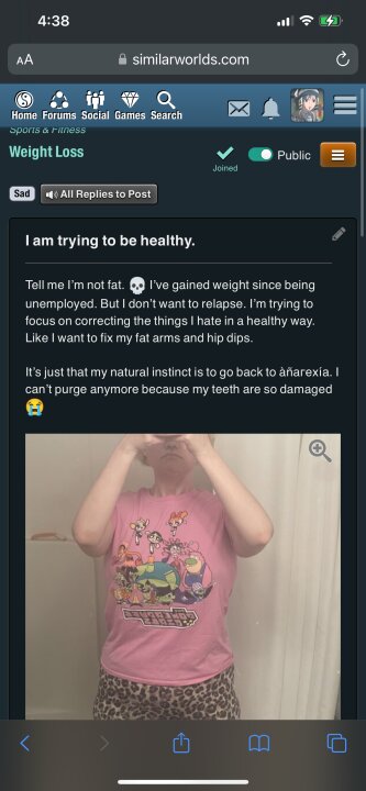 @Jaego what’s the opinion? I posted a selfie asking if my weight gain made me took too fat because I have a history of an eating disorder and he chose to shame me for my chest which I didn’t even ask about.