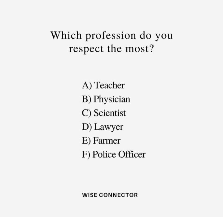 Farmer because of the work they put in to sustain the lives of so many people around them, not just their own families. Both farmers & teachers are extremely important but underappreciated professions. Therefore the most respectful in my opinion