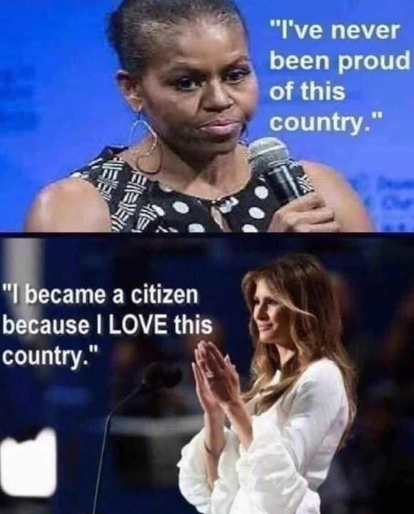 @Musicman The most hostile “First Lady” I ever remember. That one time she was caught on a hot mic saying “All this for a damned flag” to Obama. She didn’t have a single drop of loyalty or patriotism for this country.