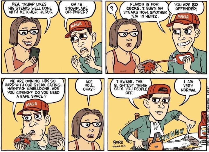 So many things I could name here, but I will just go with one here. People that post horrific pictures or videos of themselves doing something vile and disgusting all in the name of just “owning the libs.”