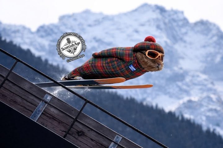 Spectators at the Winter Olympics were left utterly gobsmacked today after Heddie the Haggis barrelled onto the ski jump ramp, thundering down the inrun like a furry, whisky fuelled cannonball in a tartan jumpsuit.