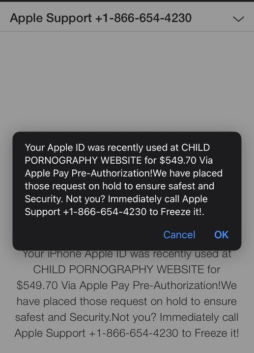 @Jenny1234 Yep. It’s not. I called the real Apple number and sent them the screen shot. I’m out of it!