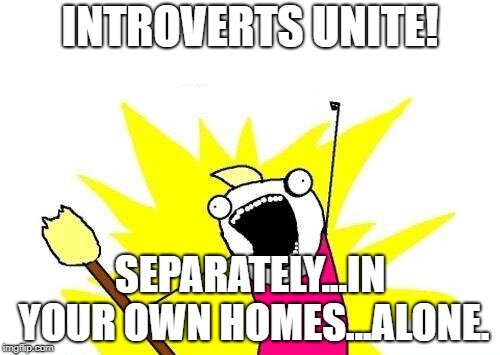 For many years, before I "knew myself" better, I tried to force myself to be an extrovert because it was semi expected of me by family and friends due to a life altering event. It was terrible and took weeks to recover. Once I started doing self reflection, I realized putting up that facade was detrimental to me and damn it, I was going to be my innate self; the introvert. I do wonder what it would be like if all of us in this post who relate were together, what would be the outcome....