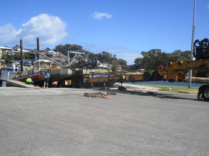 Before being trucked to Henderson it will need to be partially dismantled and those parts loaded onto another truck. The roads leading away from the Mary Street Lagoon Boat Ramp are too narrow, with 90° bends.