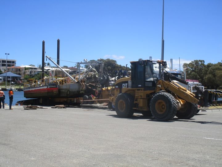 A dredge was about to be taken out of the water and transported to Henderson for a major overhaul.