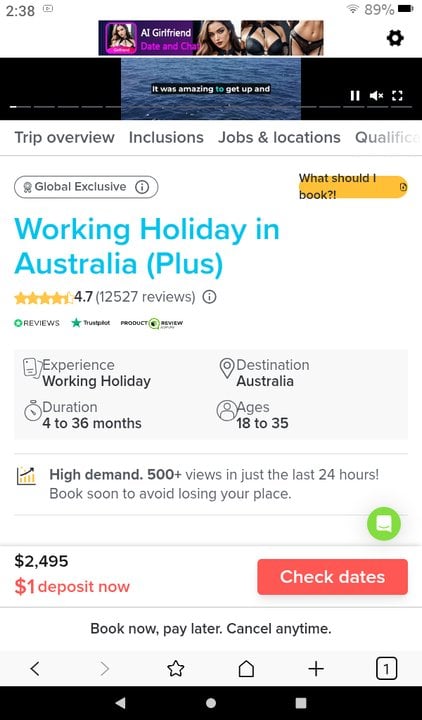 Is this a good deal for me to get a working holiday visa to aus Post Comment Receive notifications Add a comment...