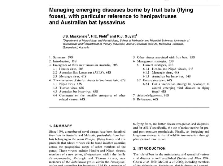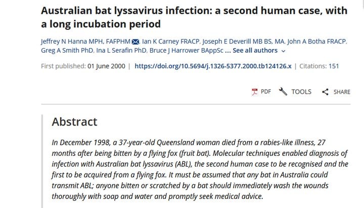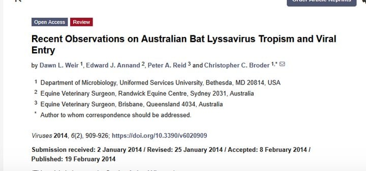 Australian bat lyssavirus (ABLV) is a recently emerged rhabdovirus of the genus lyssavirus considered endemic in Australian bat populations that causes a neurological disease in people indistinguishable from clinical rabies. There are two distinct variants of ABLV, one that circulates in frugivorous bats (genus Pteropus) and the other in insectivorous microbats (genus Saccolaimus). Three fatal human cases of ABLV infection have been reported, the most recent in 2013, and each manifested as acute encephalitis but with variable incubation periods. Importantly, two equine cases also arose recently in 2013, the first occurrence of ABLV in a species other than bats or humans. Similar to other rhabdoviruses, ABLV infects host cells through receptor-mediated endocytosis and subsequent pH-dependent fusion facilitated by its single fusogenic envelope glycoprotein (G). Recent studies have revealed that proposed rabies virus (RABV) receptors are not sufficient to permit ABLV entry into host cells and that the unknown receptor is broadly conserved among mammalian species. However, despite clear tropism differences between ABLV and RABV, the two viruses appear to utilize similar endocytic entry pathways. The recent human and horse infections highlight the importance of continued Australian public health awareness of this emerging pathogen.