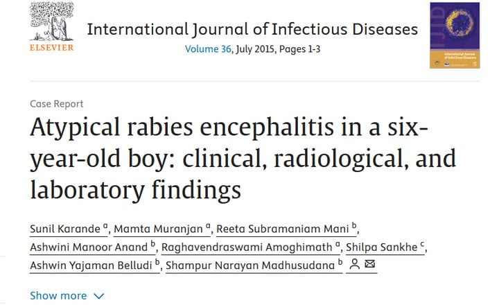 A 6-year-old boy from India developed an atypical form of rabies following a stray dog bite and as a consequence of not receiving the standard World Health Organization recommended post-exposure prophylaxis for category III wounds. Serial rising rabies virus neutralizing antibody titres in serum and cerebrospinal fluid by rapid fluorescent focus inhibition test helped confirm the diagnosis of rabies. The child has survived for 4 months since the onset of illness, albeit with neurological sequelae.