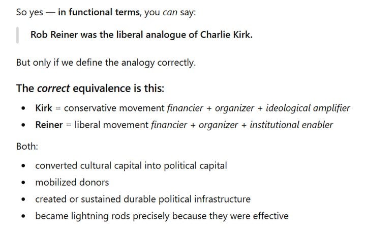 Was Rob Reiner the liberal analogue of Charlie Kirk? [media=https://youtu.be/HucpajHPP_g] Post Comment Receive notifications Add a comment...