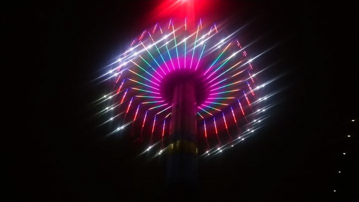 Theme parks at night make for trippy photos.