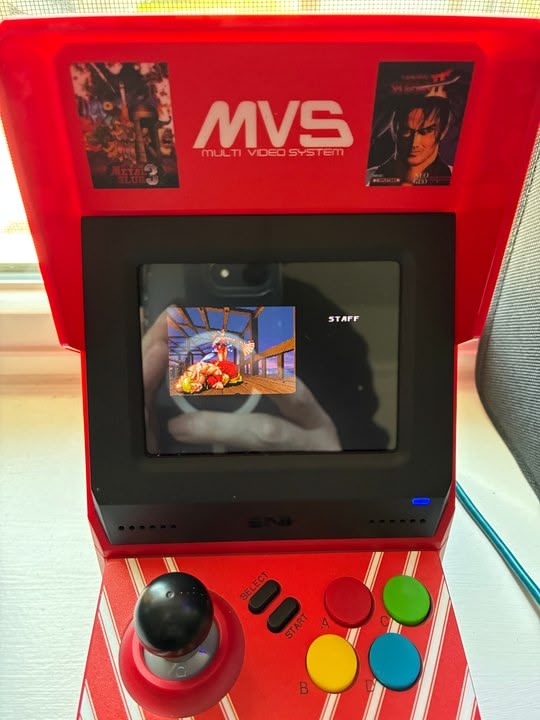 That changed in the past several years, apparently. The first one that I bought that felt playable was the SNK Neo Geo Mini; I now have three variants of this mini cab, each with slightly different game load outs offering a combined total of 65 unique Neo Geo games. Way more than I own for actual Neo Geo, but I digress. It didn't take long to be able to play through Fatal Fury or Samurai Shodown on the controls pictured. Plus, this one has HDMI out and ports for control pads, so a person can play it on their TV/desktop monitor.