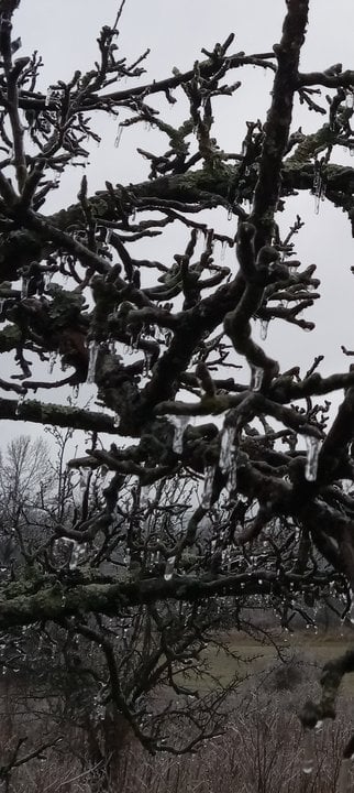 tree limbs brake with ice.be careful.