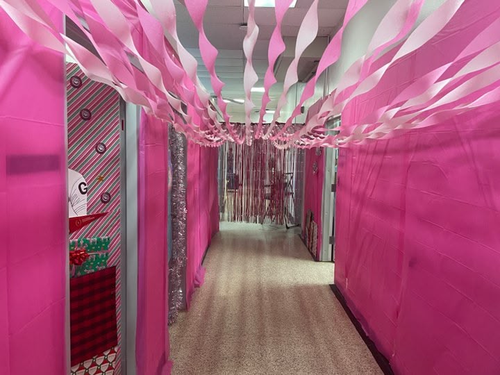 We turned this whole place into Barbie Dreamland, upstairs they turned the entire second floor into Candyland