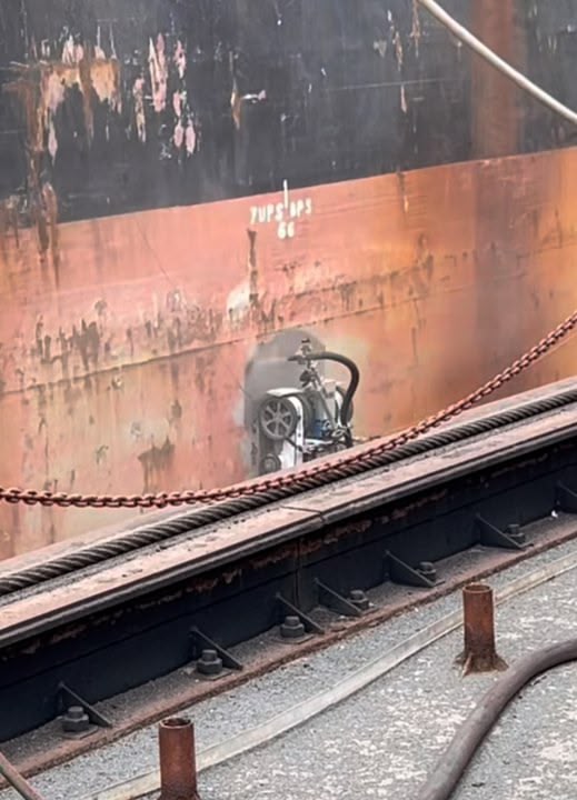 I'd not really count that as a "robot", because it still needs people to set it up, re-charge it, etc. It's just a grit-blasting and paint-spraying machine no more a robotic than an excavator or even an CNC lathe.