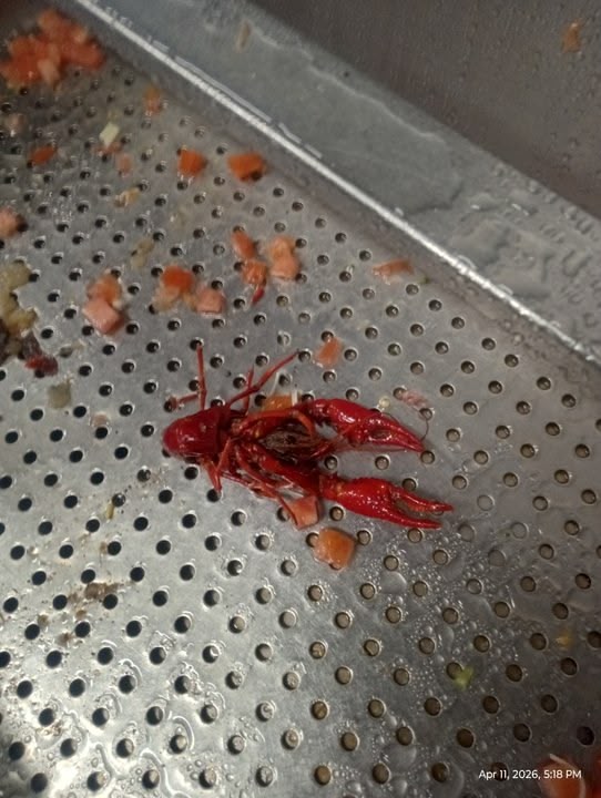 Soo... The other day at my work before I got there on close they had a "Crawl Fish Boil"... Well one of the guys that was doing it when it was over brought his dishes from the Crawl Fish Boil back to my sink and was washing them... And he still had one them little Crawl Fish in there 🤣🤣🤣🤣 I told him "I know your gonna get that out of my sink and throw it away"... He said you don't want to throw it away?... I said NO I'm scared of it 🤣🤣🤣🤣 But I DO want a picture of it... So he let me get the picture and threw it away for me 🤣🤣🤣🦐🦐🦐❤❤❤